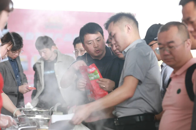 活動高 潮來襲!河南牧業(yè)經(jīng)濟學(xué)院黨委書記穆瑞杰,中國食品工業(yè)協(xié)會副會長、河南食品工業(yè)協(xié)會常務(wù)副會長陳振杰,河南食品工業(yè)協(xié)會秘書長牛景紅,焦作市農(nóng)業(yè)農(nóng)村局局長宋振宇,武陟縣委副書記、縣長張濤,旭瑞集團董事長邱國慶等為新品上市注入能量。共同啟動“第 四代”超潔凈凍鮮鴨血新品上市。